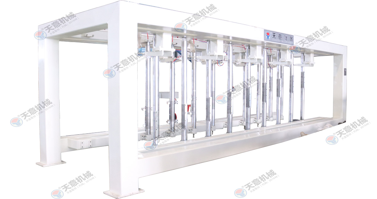 坯體經(jīng)過發(fā)泡靜停達(dá)到切割要求后模具轉(zhuǎn)移至切割區(qū),由翻轉(zhuǎn)機(jī)分離模具并將坯體翻轉(zhuǎn)90度放到蒸養(yǎng)小車上,然后經(jīng)過切割工序?qū)ε黧w進(jìn)行側(cè)面切割刨槽及水平和垂直分割,使之達(dá)到外觀尺寸要求,切割工作可以機(jī)械化進(jìn)行也可人工操作,這道工序直接決定ALC板材的制品外觀質(zhì)量以及某些內(nèi)在質(zhì)量。
