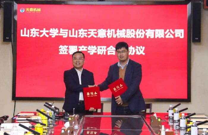 雙方簽署了產學研合作協(xié)議,山東大學機械工程學院院長萬熠與市科技局黨組成員、副局長付貴福為山東大學-天意機械裝配式建筑裝備研發(fā)中心揭牌。
