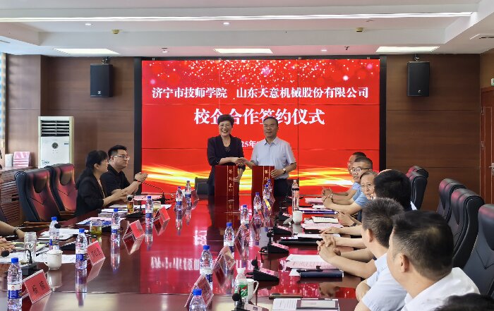 劉洪彬董事長(zhǎng)發(fā)表了講話,他表示,企業(yè)的競(jìng)爭(zhēng),本質(zhì)是人才的競(jìng)爭(zhēng)。在企業(yè)的發(fā)展中,技能型人才始終是我們最寶貴的財(cái)富。通過加強(qiáng)產(chǎn)教融合建設(shè),濟(jì)寧市技工院校為我們公司培養(yǎng)了許多專業(yè)過硬的技能型人才。退役軍人們,在部隊(duì)中鍛造的紀(jì)律意識(shí)、抗壓能力和團(tuán)隊(duì)協(xié)作精神,正是現(xiàn)代企業(yè)所急需的人才。許多退役軍人同事已在設(shè)備調(diào)試、售后服務(wù)、生產(chǎn)管理等關(guān)鍵崗位上,成長(zhǎng)為企業(yè)的中堅(jiān)力量。作為扎根濟(jì)寧20年的本土企業(yè),山東天意機(jī)械股份有限公司成立于1998年,是以裝配式建筑裝備研發(fā)、制造為主導(dǎo),同時(shí)涵蓋鋁合金型材生產(chǎn)、機(jī)器人制造、智慧物流、新能源等領(lǐng)域的國(guó)際化、多元化、創(chuàng)新型企業(yè)集團(tuán)。歡迎廣大學(xué)子和退役軍人到天意,共創(chuàng)美好未來! 隨后,劉洪彬董事長(zhǎng)與濟(jì)寧市技師學(xué)院進(jìn)行了校企合作簽約儀式。