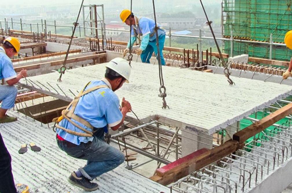 (1)將鋼絲繩穿入預(yù)制板上面的六個(gè)預(yù)埋吊環(huán)內(nèi),確認(rèn)連接緊固后,緩慢起吊。